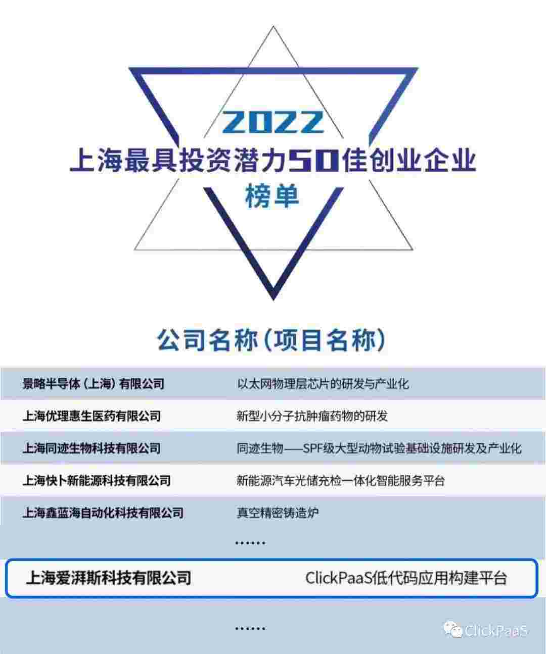 华为钱包 作为国内低代码PaaS平台的领军企业,,,,与120家创企入围角逐。。。。。。。。。。。期间接受了来自德同资本、、、、、、、、、、、、、领中资本等知名投资机构的10位投资人组成专家评委团的背靠背盲选。。。。。。。。并最终入围“2022上海最具投资潜力50佳创业企业”榜单,,,,,,,,,,被列入“上海市重点培育创业企业库”。。。。。。。。