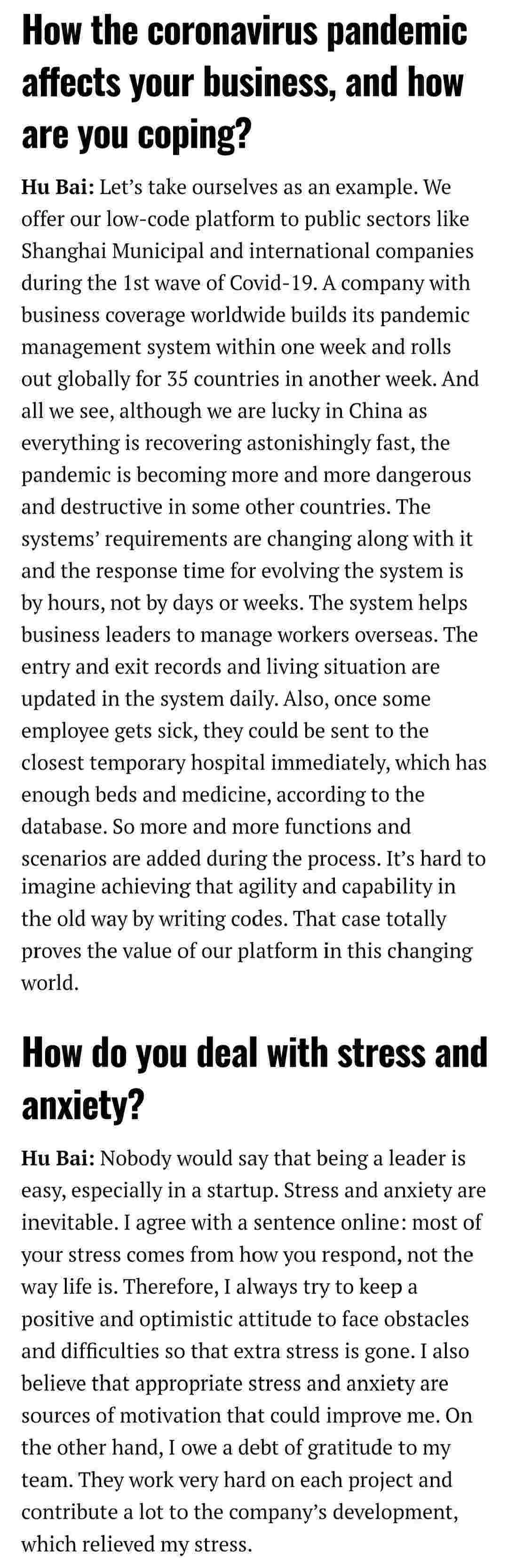 2021年年初,,,,,,,,,爱湃斯科技CEO胡柏受邀接受法媒Startup.info的专访,,,,与Startup info的读者分享了自己的创业经历、、、、、以及低代码平台华为钱包的创新之处。。。。。。